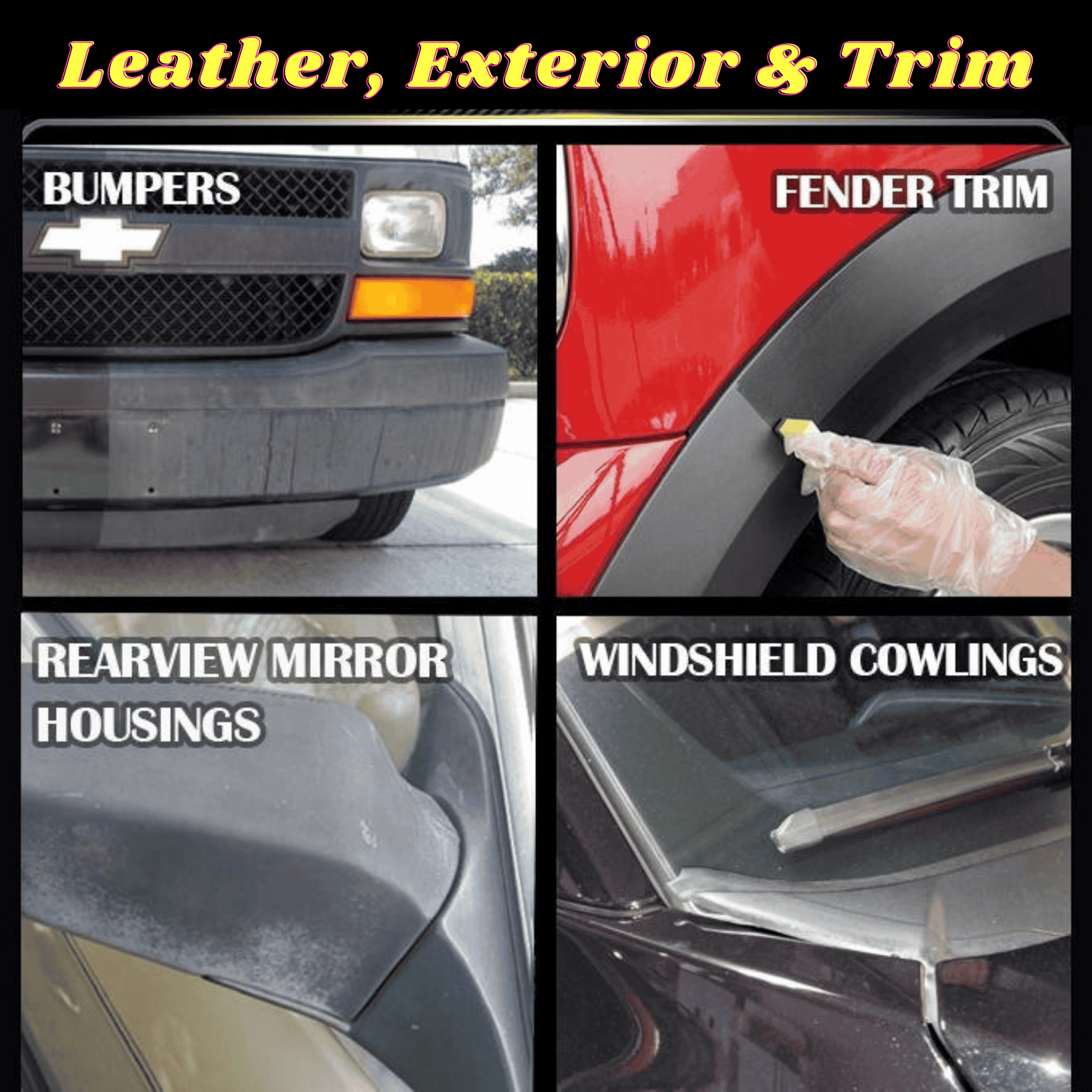 RESTORES & PROTECTS YOUR TRIM: Brings new life to all non-painted exterior plastic, vinyl, and rubber trim. Works on non-painted bumpers, moldings, handles, rearview mirror housings, and windshield cowlings.
